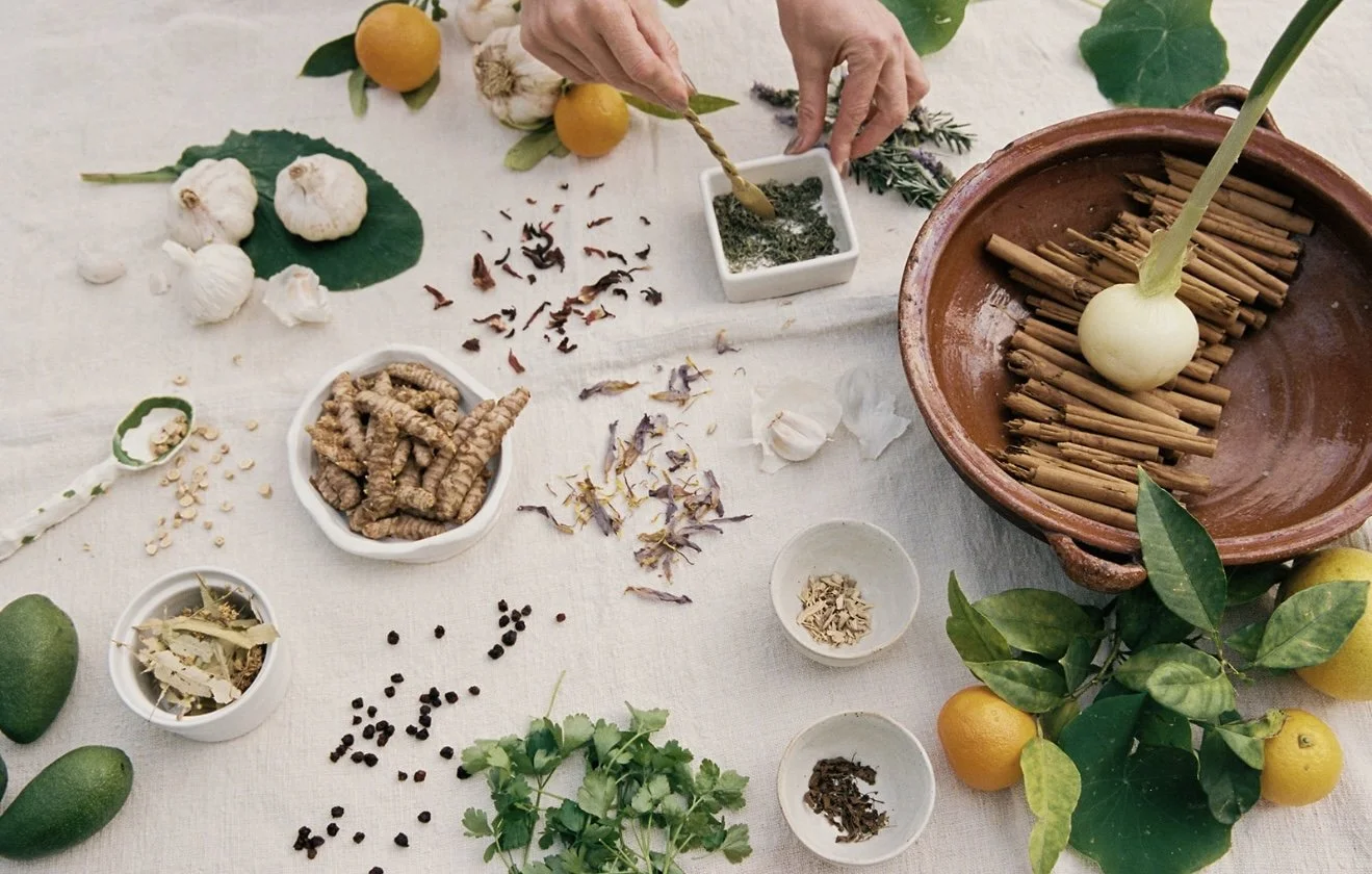 Honoring the healing techniques learned and passed down from our grandmothers, and the wild weeds sprouted from our childhood. A return to the soil of the earth. Petals, leaves and roots to aide our journeys towards more vibrancy and health.